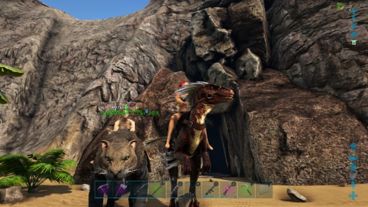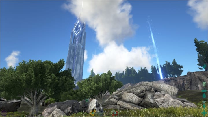 Tribes within the game are an essential thing. You can't make it very far without one, mainly because of both the dino taming rates and the engrams. This adds a sense of cooperation in this otherwise hostile environment. Tribes can both be a help and a hindrance. The community within the game is like that of rust, minus the racial slurs and hacking. It's very much a roulette spin on if you get a good tribe or not. This is why I suggest popping in with a few friends, as to not have to worry as bad. Nextly, raiding in this game is much different from that of most other survival games. Dino's add another depth to the raid system. Every single dino has a specific job and ability, making who you choose to bring into battle essential. Let's say you wanted to raid a base, but the base is on a mountain top with huge gates. You could easily just ride in on your mountain climbing cat kangaroo hybrid and scale all the way up to it. You could also ride in on a giant bird and hop off, parachuting down and picking people off with your long ranged weapon of choice. It makes stealing people's things and destroying all their hard work much more fun! Assuming you're not on the receiving end. That brings me to the bad end of raiding. Again, this isn't a dig at just the game, this is a dig at the community. You can never really leave your base alone for too long in the official servers as everyone is ready to attack absolutely anything that they see. This could prove to be really frustrating considering the amount of grinding you have to do to pull yourself out of the naked self you were at the start of the game. Besides that, it provides an honest challenge in the game, even at the higher levels and tech tiers. You could be the most powerful tribe on the server, but if you let your guard slip, that could quickly change. The next feature in this game that sets it apart is the transfer system. At each one of the obelisks, giant Red, Green, and blue pillars, you can transfer up to twenty dinos and your character to another server exactly as they are. This could prove essential when the server you are in is becoming useless or dangerous. It also helps when you ascend. This also creates another problem within the game. With this system, trolls can hop from server to server and absolutely annihilate everything around you.