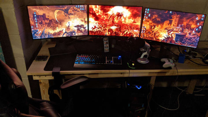 There’s an argument to be made for multiple monitor setups. When I started I was using one monitor and I’d have to tab out of my game to check my stream quality or look up info in a browser. I expanded to a dual monitor setup and just half screened OBS and Brave, but now I’m happy to say I have a dedicated browser monitor, Streaming monitor, and gaming monitor. My gaming monitor was a gift for my birthday this year. I was excited to upgrade to 144hz and 1440p. The two outer monitors are just standard 1080 Dells. If you haven’t gamed at 144hz I highly recommend it. This isn’t imperative to streaming, and if you have an older graphics card it might be difficult to achieve while streaming anyway, but it was quite frankly an entirely new experience. When I play FFXIV I use a wired Xbox controller instead of mouse and keyboard and that’s simply because I also play it on my PS4 and that keeps all my hotbars in line. My wife considers me a pleb for using a controller on PC and it just makes me love her more. She plays Dark Souls though so you know… she’s hardcore.