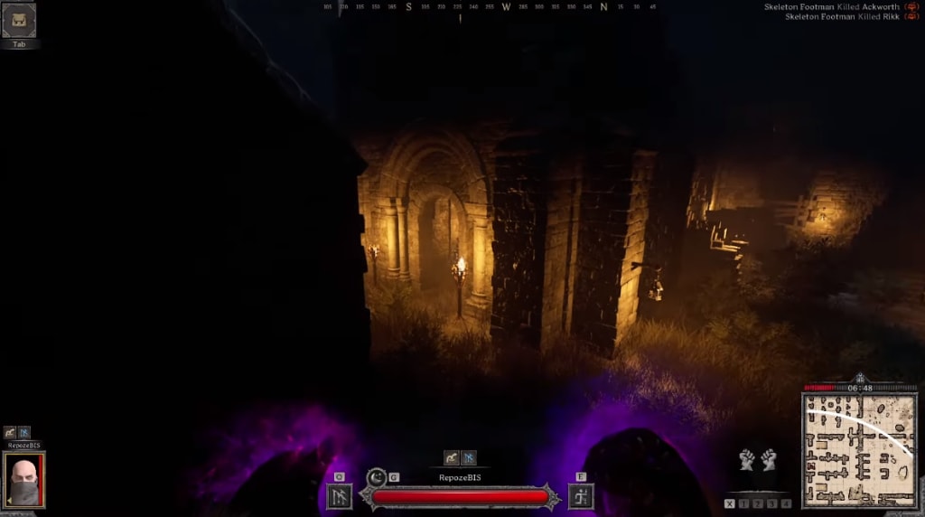 Another thing to be aware of is that there are computer-controlled enemy types like Skeletons in the dungeons as well. It's, therefore, PvPvE. It's difficult to play and intense and dark. It's about slowly moving forward and refraining from doing too much, or drawing attention to yourself by using the sound of a torch, even though all your actions generate noise. You won't be able see much at times without torch.