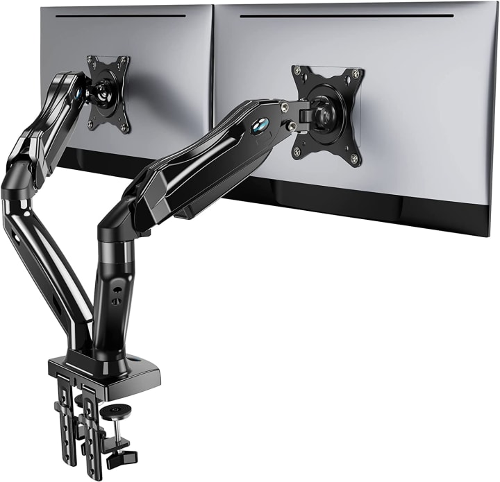The HUANUO Dual Monitor Stand is an absolute game-changer for your workspace. This adjustable spring monitor desk mount isn’t just your average setup; it’s a versatile swivel VESA bracket that brings ergonomic bliss to your desk. Compatible with 17 to 27-inch computer screens, this stand’s each arm can handle a hefty load, from 4.4 to 14.3 pounds, ensuring your screens are secured with ease. And clearing up desk space that leaves more room for personalization or gadgets!
