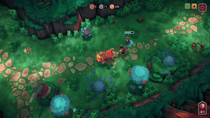 There is no complicated story in Wild Woods , and neither is there a simple one . We are a cat, we have only a van, which is driven by our horned friend Rosie, and the goal is to move as far as possible in a fairy-tale forest full of dangers. We move towards this goal according to the standard scheme for a roguelike - one after another, passing procedurally generated levels. You can do this both alone and with friends - up to four people can play Wild Woods at the same time.