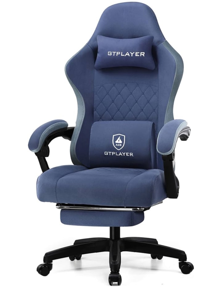 The chair also includes a convenient footrest that can be extended or retracted, providing an added level of relaxation. With its striking blue color and sleek design, the GTPLAYER Office Chair not only enhances your gaming setup but also brings a modern aesthetic to any office space.