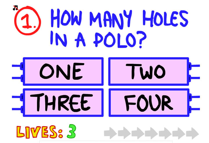 The Impossible Quiz is a quiz that you cannot describe other than... impossible. The answers may not seem to make sense, but some will certainly unravel the way of thinking! To play this game you need not only a brilliant but also a special spirit, and certainly a good memory! Make sure you remember your answers well, because you only get three lives at a time, and once you've used them up, you have to start all over again. However, the questions and answers remain the same, so a good memory is essential!