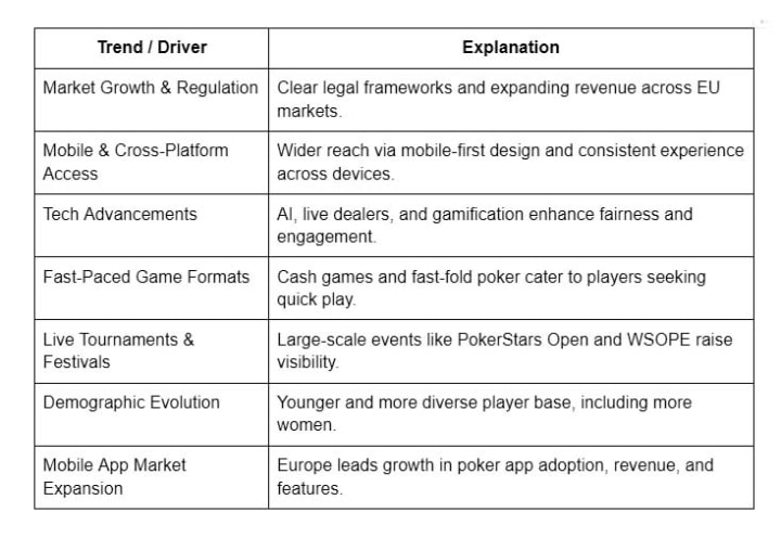Here is a Table Suggesting Key Drivers Behind Poker’s European Boom