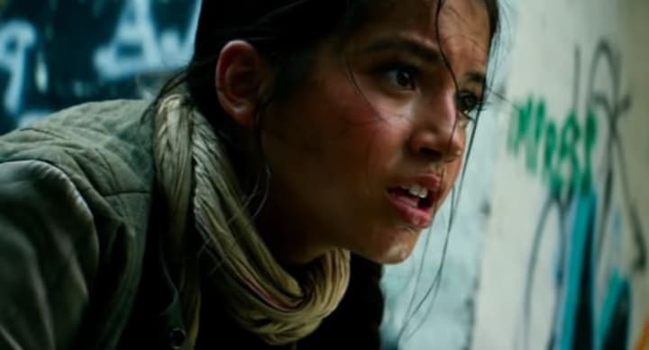 Isabela Moner is playing the new human character, Izabella. The Transformer accompanying Izabella has yet to be identified. Considering that the mysterious Transformer is bonding with a human, he's probably an Autobot trying to save the world — although he appears to be damaged, so this Autobot might not make it through the film.