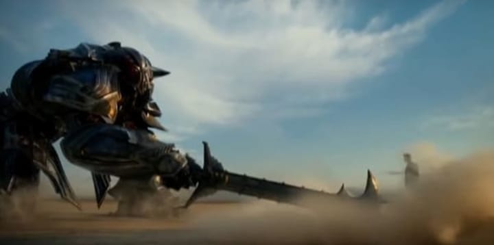 Regardless of Megatron receiving a new appearance, his role in the film is still to be determined. Hopefully Megatron returns at the right time, because I really don't want to see Optimus kill Bumblebee. That retracted blade in the last few screenshots of the trailer looked like it went through Bumblebee's head.
