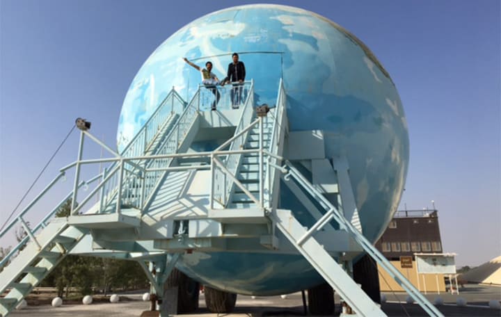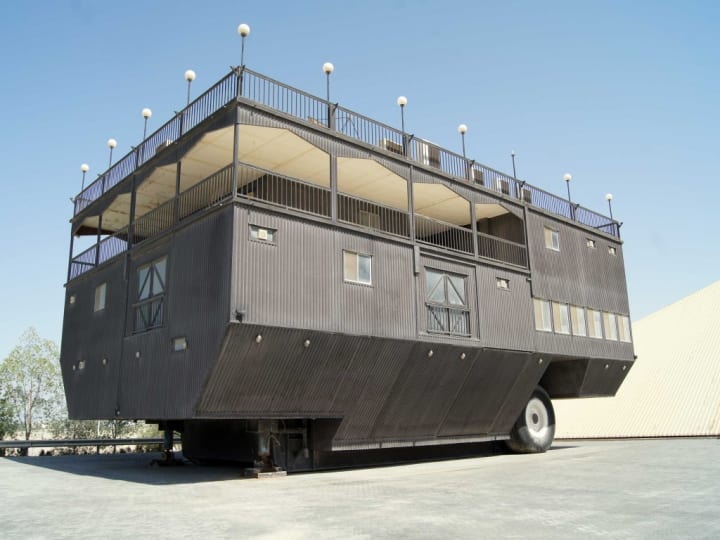 This globe type vehicle is actually a kind of hotel featuring 9 bedrooms and 8 bathrooms on multiple levels and can be ridden around the desert in style.