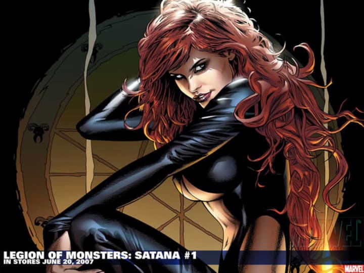 Unlike her brother Daimon Hellstrom, Satana — daughter of Satan himself — was brought up to honor her father. She's skilled in black magic, and her spirit was bonded to an evil spirit called a Basilisk in order to increase her power. She was ultimately banished to Earth, though, as a succubus; she seduces men and then steals their souls.