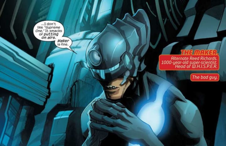 Over in the Ultimate Universe, though, things took a different direction. The Ultimate version of Reed became the Ultimate Universe's greatest enemy, responsible for a devastating swathe of death and destruction. Ironically, he became the last and greatest protector of his dimension, as realities collided in the buildup to "Secret Wars." He's successfully made the transition over to the mainstream Marvel Universe, and is now the main villain of Al Ewing's New Avengers.