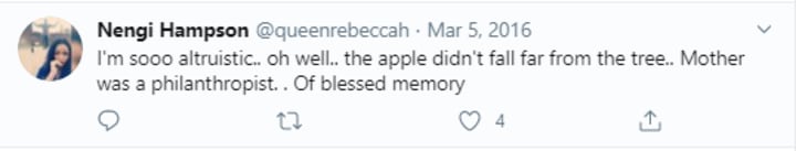 On her Twitter, one that she had from January 2016 and tweeted on till January 2017, she spilled a couple of things.