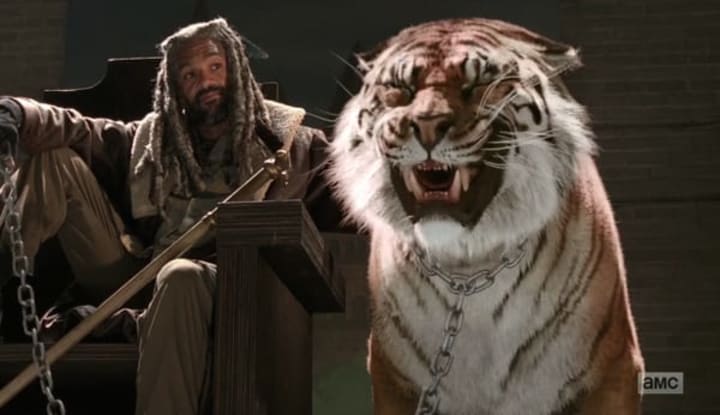 Along with that, Gimple also mentioned that Shiva stands out when it comes to showing the pre-edited episodes of The Walking Dead to executive staff. Without the added special effects, the pre-edited version shows a motion-capture actor jumping around like a tiger — where Gimple has to ask the executives to "use their imaginations." Luckily, the final product of Shiva is a much better sight than a man suited up in a blue leotard, running around pretending to be a tiger.