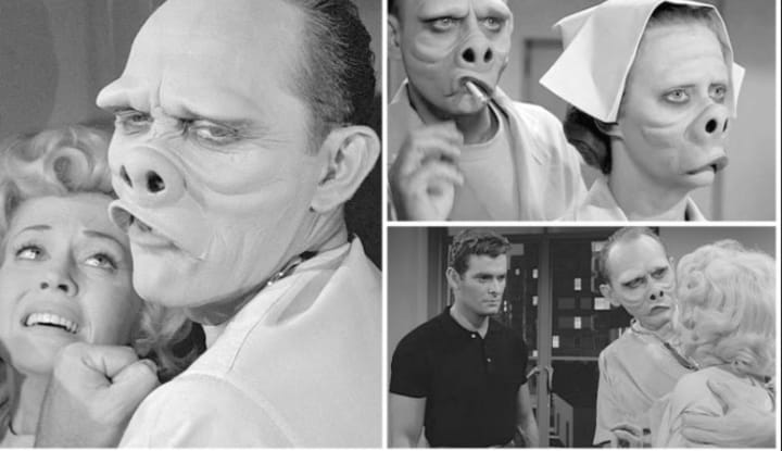 When the surgical team removes their masks, viewers see that everyone in the hospital looks like a hippopotamus except Janet. She was escorted out of the hospital by her own kind and sent to an "ugly camp" with people who looked like her.