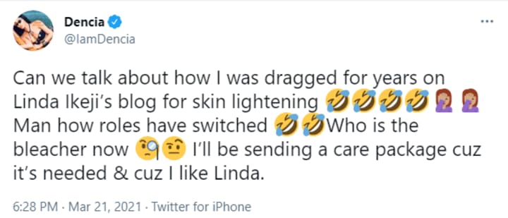 6 Years After Yabbing Her for Bleaching, Dencia Bashes Linda Ikeji for Doing Same.