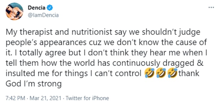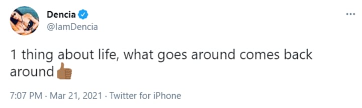 Taking to social media platform Twitter, Dencia tweeted out saying: