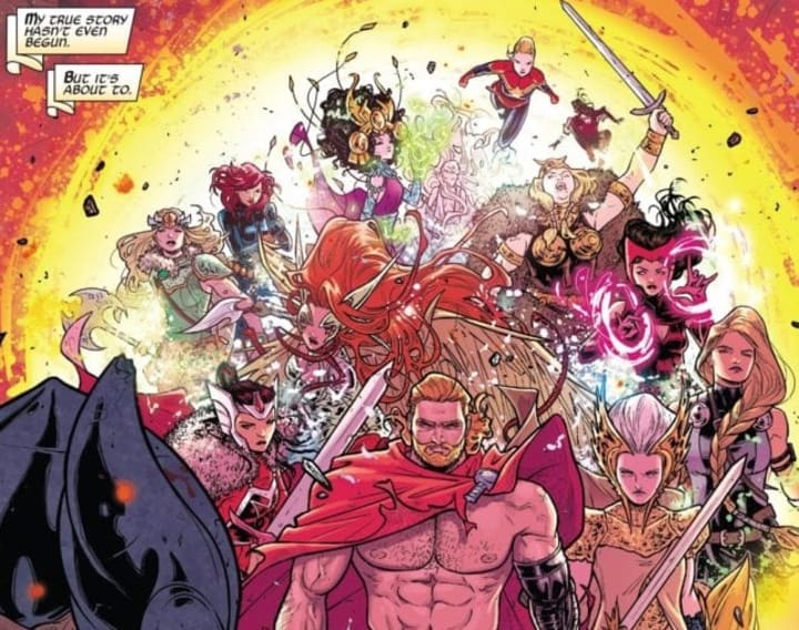 Freya called together an army of female heroes to help Thor beat the Destroyer, powered by her husband Odin.