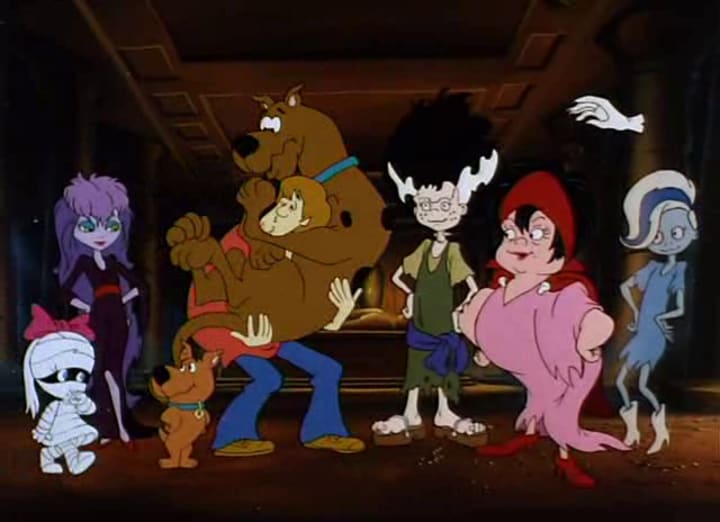 On October 16, 1988, two days shy of a full year after Boo Brothers, Scooby, Shaggy, and Scrappy were back in Scooby-Doo and the Ghoul School. The plot has the trio being hired as gym teachers for what they assume is an all-girls school, only to discover that it's a "ghoul school." The school is led by the charming headmistress, Miss Grimwood, who was voiced by the late, great Glynis Johns (who, sadly, passed away in January 2024 at age 100). The students are the daughters of the world's most feared monsters: Sibella (Dracula's daughter), Winnie (Wolfman's daughter), Elsa (daughter of Frankenstein's monster), Phantasma (The Phantom's daughter), and Tanis (The Mummy's daughter).
