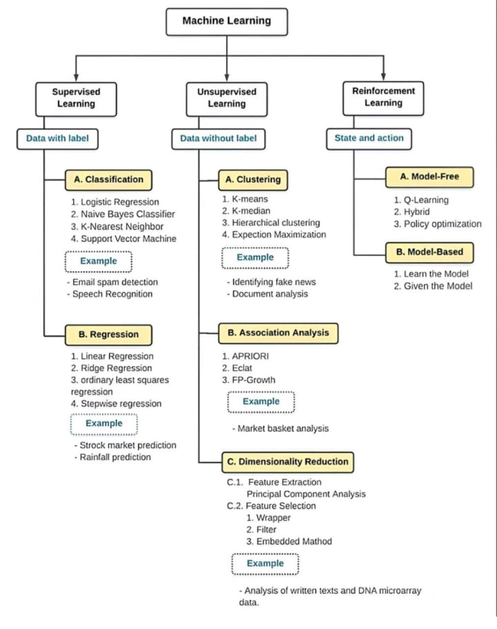 - Explain the difference between supervised, unsupervised, and reinforcement learning. Provide an example for each.
