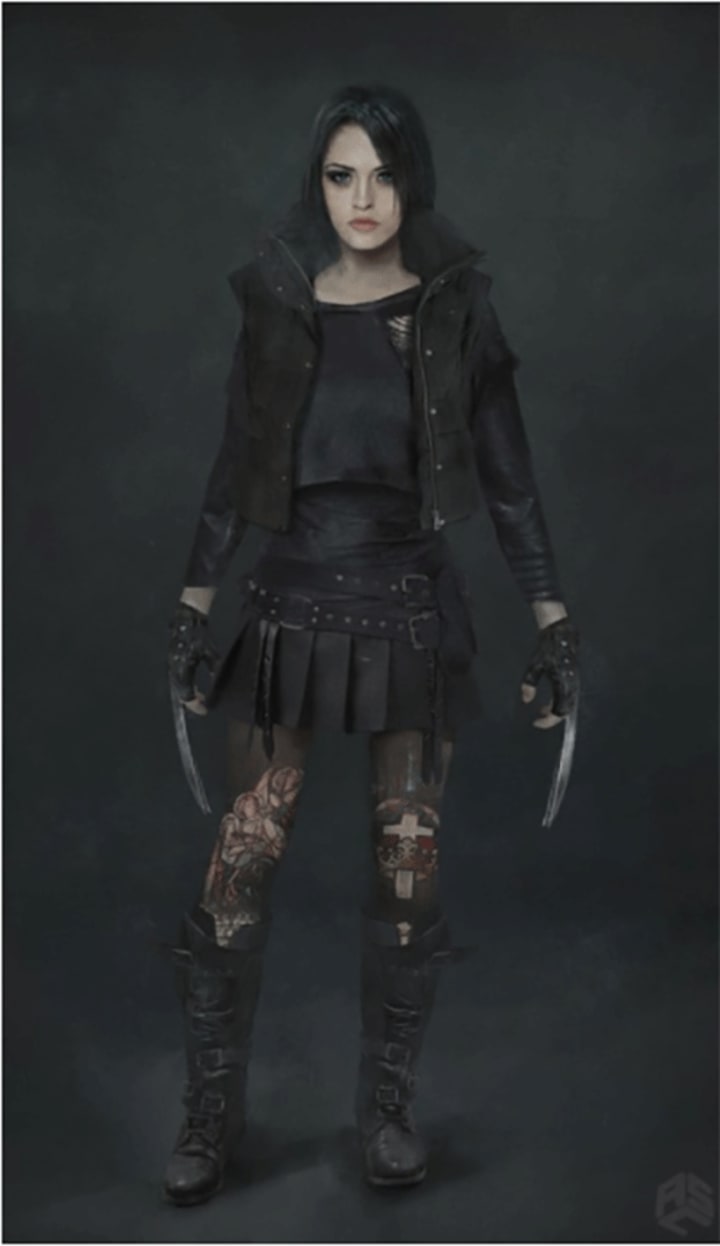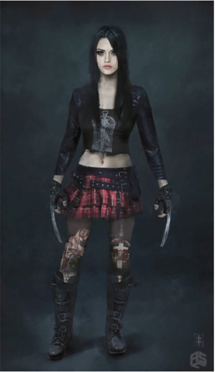 As you can see, the original concept art envisioned X-23 as a teenager rather than a child, and gave her a distinctly gothic style. James Mangold wasn't impressed, though; he's highly critical of the teenage superhero design.