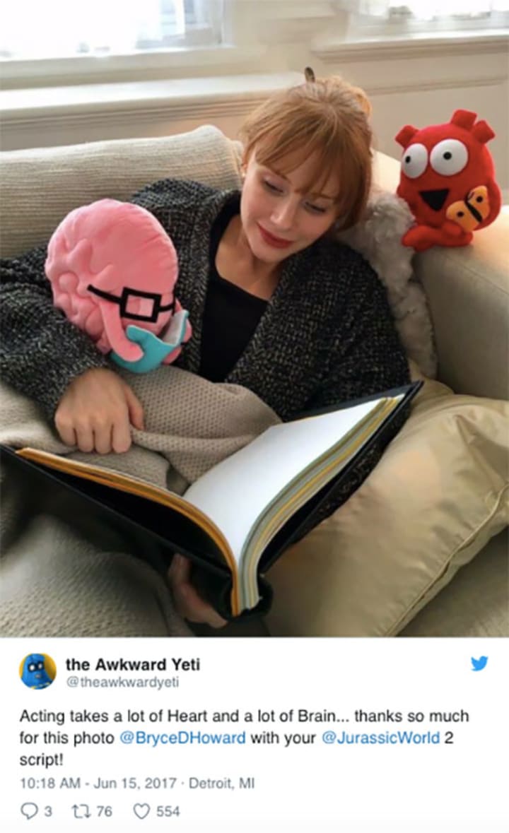 Twitter user @theawkwardyeti shared a snap of Dallas Howard curling up with a good book and running through her JW2 script. Wow, she's learning her lines, we had better call the police. While I also wasn't phased by the picture, someone looked a little closer at the image and over on The JHN Files, they spotted what could be a potentially major detail. If you look at the last 1/3 of the pages, they are clearly a different color, which apparently points to a complete overhaul of the film's finale.