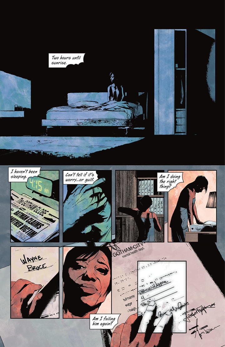 Last issue intrigued me, enough that I surely came back to see what was going to happen and this issue, well this issue just read you like a book and took away your library card. This takes us to church and serves it up but good. The revelations along with the twists & turns of what we learn, no ma’am we never stood a chance. The writing here is exceptional, the characterisation is flawless and the interiors are bloody brilliant. Whatever this bat flavoured kool-aid y’all are serving up i’m guzzling by the gallon because this is phenomenal.