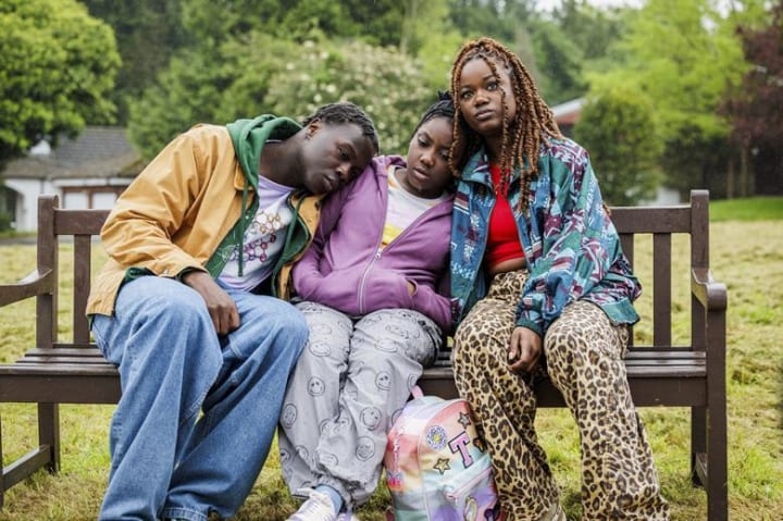 Then there’s Tionne (Akins Subair), their brother, who carries his grief differently. While his sisters focus on surviving day-to-day, Tionne channels his pain into ambition, dreaming of university and a life beyond their struggles. His pet chicken, oddly enough, becomes a symbol of his desire for stability—a small, manageable responsibility in a chaotic world. His relationship with his girlfriend, Rome (Talitha Wing), adds another layer of complexity. Their bond is tender and authentic, but it also reflects the tension between his aspirations and the emotional weight of his family’s needs. Together, they navigate the awkwardness of young love while grappling with the realities of their lives.