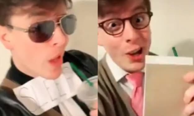 On the evening of the party, Virgil brought his container with him since he expected to freak out in the middle of the gathering. He recognized a few more faces than just Elliott's such as the nonbinary Timpani and Blumiere of his old high school, Talyn and Joan, his old high school's student counsel president, Roman DelGuapo, and Logan Tesla, his college classmate that he got along with. After a few greetings, he found that Roman was less conceited than he was in high school and was actually taking a break after a college program where he would be working at one of the Disney parks. He also heard tales of Roman witnessing one half of a gay couple backstage dressing in one of the Disney princess dresses (with the cast member's consent and offer to be on lookout duty) before sharing a glorious kiss. Virgil was starting to feel good about the party, but he was stopped by something he wouldn't expect: a beautiful man with glasses and a puffy coat walked in and set his coat down as if it wrapped up around something and revealed the same outfit as the man in Virgil's dreams. The man saw Virgil and he froze while making eye contact.