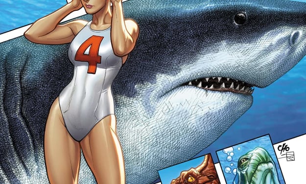 The interiors have a very unique style all their own. What they do is add this crazy element of old school horror to the page that blends the science fiction and horror into this modern take. The linework is strong and how we see the varying weights and techniques being utilised to create the detail within the work is really quite good. We see backgrounds being utilised a bit more judiciously than I’d like because they really do enhance and expand the moments. How they work within the composition of the panels to bring out the depth perception, sense of scale and the overall sense of size and scope to the story is definitely strong. The utilisation of the page layouts and how we see the angles and perspective in the panels show a strong and interesting eye for storytelling. The hues and tones within the colours being utilised to create the shading, highlights and shadow work shows a great understanding of how colour works.