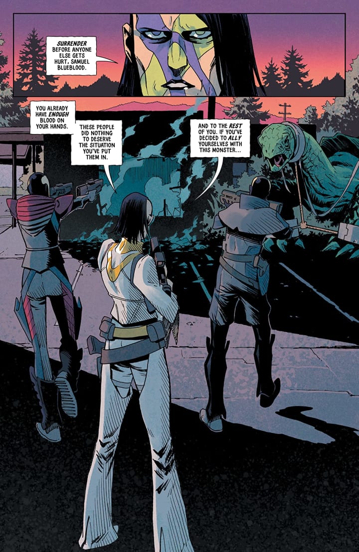 What this issue does in terms of pure storytelling sprinkled with some action is take us through is a highly charged emotional madness that just engulfs the reader. The introduction of Orak and his passion to take Samuel in verges on the scary obsessive avenue and it really kind of adds something to the story that we needed to see. I was kind of hoping that the three of them would add one more person to their retinue but I understand the reasons for it. Though I’ve not lost all hope, all things considered as we see things playing out here. With the way this issue ends on the note that it does shows me that Ed isn’t shying away from the emotional impact he’s going to put the reader through.