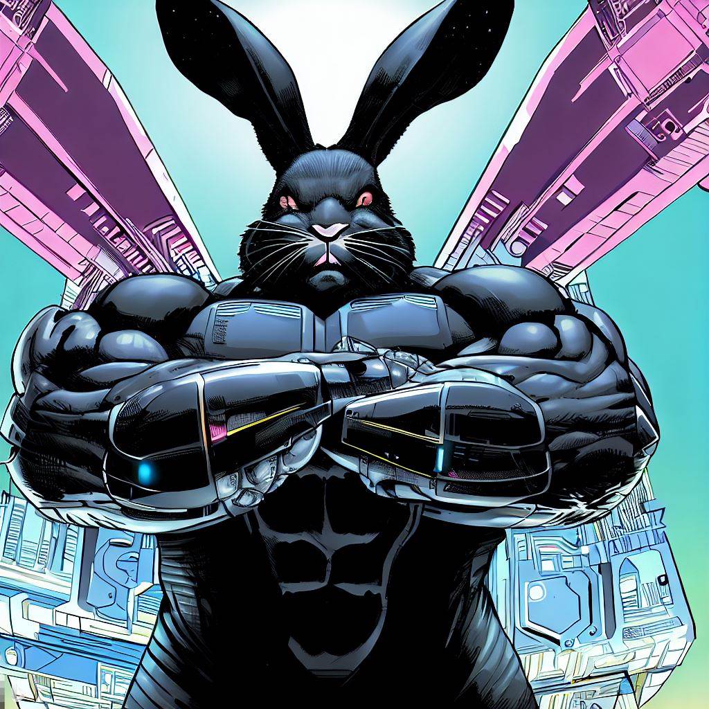 In a far-off galaxy known as Behal, ravaged by way of a millennial war between carnivores and herbivores, lives the mercenary Black, a humanoid black rabbit almost meters tall who loves meat and gold. With hard manners and seemingly no morals, Black often clashes with the herbivore defense force and a group of space pirates called the Perpetual Stars. Formidable in hand-to-hand combat and with any kind of weapon, the lone black rabbit is followed by Raibin, a beautiful woman with white hair and a terrible temper, and Josh, a humanoid fox with a horrible sense of humor.