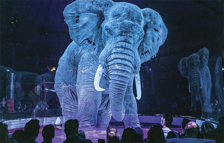 Like the other animals presented at Circus Roncalli, this elephant is a 3D hologram, a tech-savvy attempt to preserve the flavor of historic circuses while easing concerns about animal cruelty.