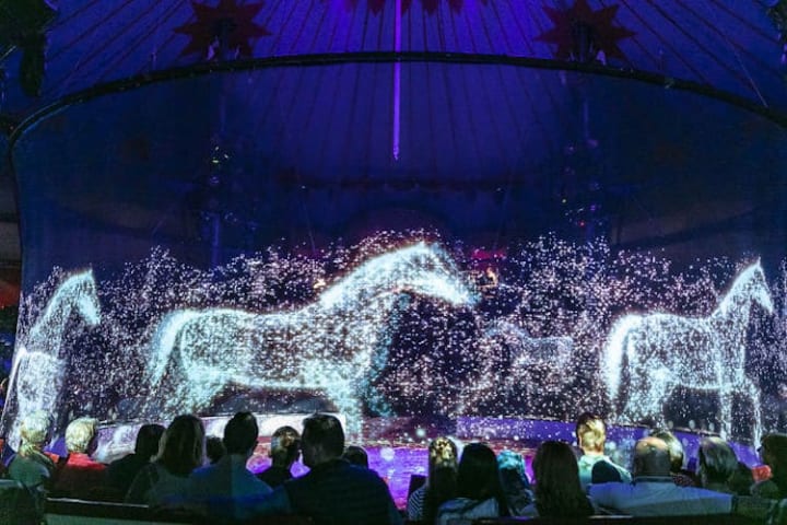 Since 2018, the show has not featured live animals, but holographic projections with 360-degree views for onlookers around the ring. Eleven projectors are needed to accomplish this, according to the BBC.