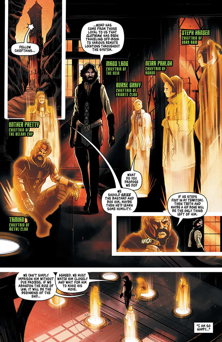 I have been enjoying this story right up until the last page here. The last page here ruins everything and by that I mean it just stops, there’s no ending, no resolution, just stops telling the story. Will there be a volume two? Will we get the opportunity to see how the aftermath is shown, heck is there even an aftermath? This has been such a good, interesting and fascinating tale and honestly it needs two more issues, this fitting everything into four issues is for the birds. Alright now that I have vented that, for now, it’s time to move onto the story here. This is such a well crafted universe and has such a great night time soap opera feel to it with all these behind the scenes machinations that cause drama and set the stage for what is coming next. There are a lot of moving parts here that are in motion and they all conspire to really pull all the different players into the same sphere of influence.