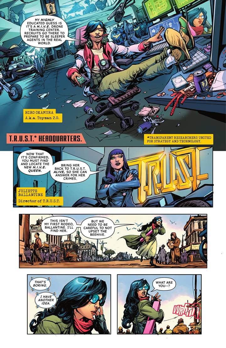 Okay colour me intrigued and here for the long haul. I was a little worried with the title of the book, which is both on trend and yet misleading but that’s okay it’s all done for the popularity of the character. Now I’ve not heard of this organisation before and since Checkmate I have been saying we need to see more of these spy type organisations though this feels like a shadowy one without the spy aspect more like a direct assault on super villain bases with an even more ambiguous leader with their own agenda and I can’t wait to see how T.R.U.S.T. is exposed for what it really is.