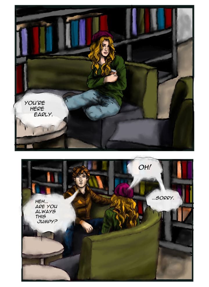 “R-rememb-er how I told you I wasn’t good with people?” she asked sorrowfully. “I…I can’t go to the café anymore.” Jacob frowned.
