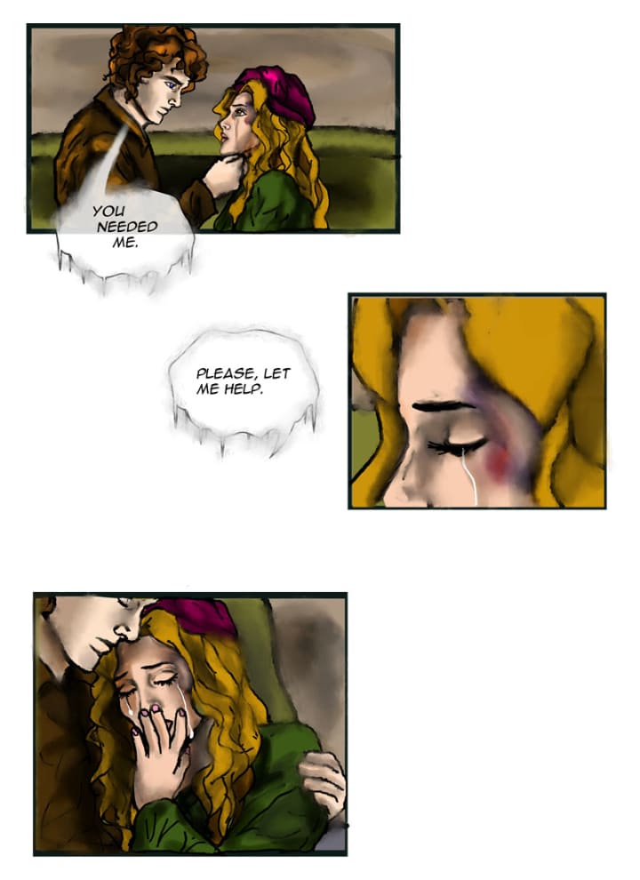 “Can we meet up somewhere else from now on?” Though he wanted to push and insist she tell him who hurt her, he decided to leave it be. She was in enough pain and wasn’t ready to confide in him yet.
