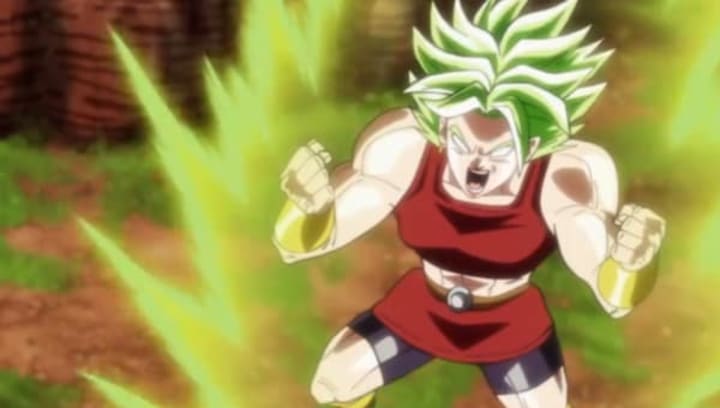 The Dragon Ball anime have been consistent with their use of attributing a specific color of aura to each individual character. Keep in mind that the color of their auras changes depending on what form they ascend into. For Kale, it would seem as if she'd be given a yellow aura when becoming a Super Saiyan, but Kale actually has a green-tinted aura — meaning they're the only two Saiyans in the Dragon Ball universe to possess a green aura.
