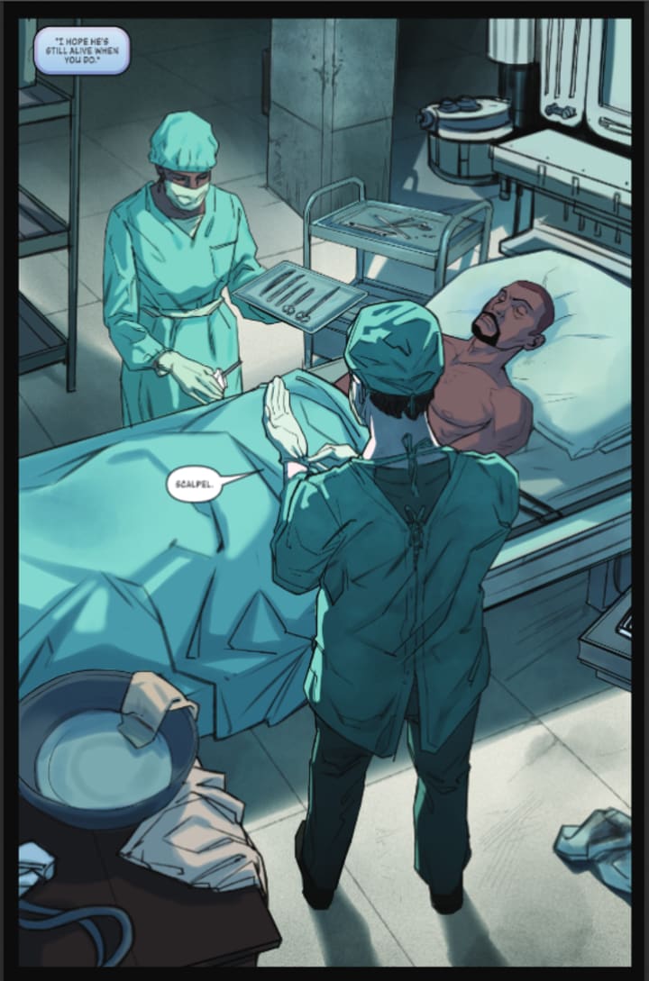 I absolutely love this series and that’s because we simply don’t see anything of this nature on stands today. I mean c’mon a story about transplants that has espionage, intrigue and a mystery all tied into this life saving epic drama. We’re seeing how jealousy and rivalry can make a man do some of the harshest things a man can do and kill people to prove their point all while utilising misdirection to mask their identity. The complexity we see within this story sets Karla apart from so many writers that are currently putting out some top notch stuff of their own and to stand out from the crowd like she’s capable of is phenomenal to me. This is the kind of book that excites me because it’s unique and it is so well written.