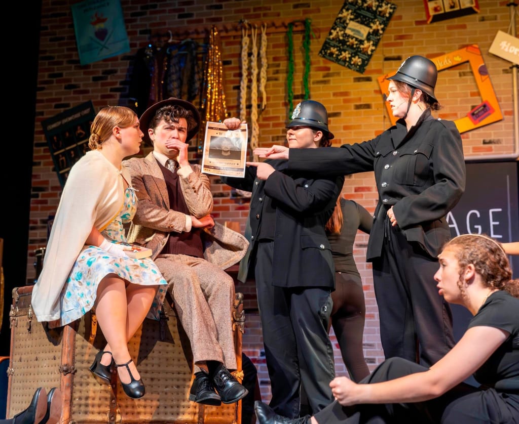 The 39 Steps escaped onto Endicott College’s stage as their fall mainstage production. Adapted from the novel by John Buchan, this thriller-comedy pursues Londoner Richard Hanney, who becomes embroiled in a murder case. As he flees across the British countryside, he gets cuffed up in absurd situations.