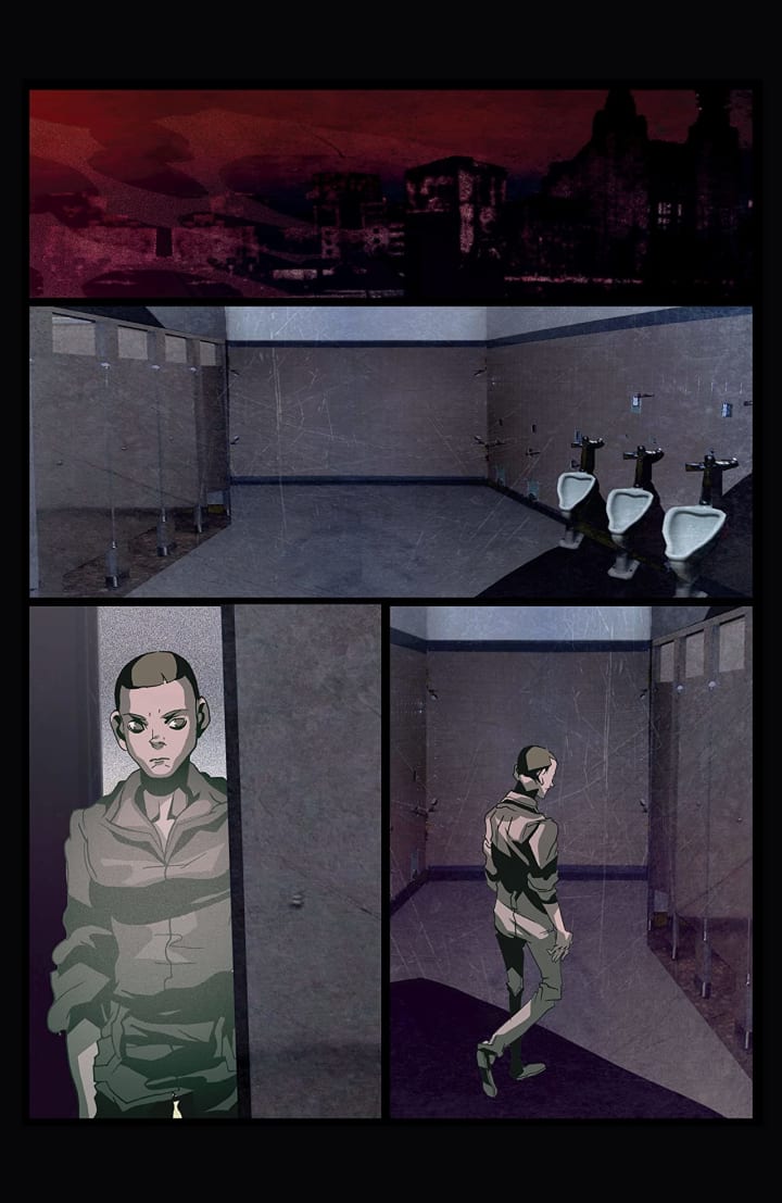 There really is something about the interiors here that hits you in the gut. The way this is constructed with backgrounds that feel like they are computer generated and then the characters drawn into the picture in a different style is so powerful and impactful. I love the linework and how we see the varying weights and techniques being utilised to create the detail within the work is absolutely amazing to see. The backgrounds do great things with enhancing and expanding the moments. They also work within the composition of the panels to bring out the depth perception, sense of scale and the overall sense of size and scope to the story. The utilisation of the page layouts and how we see the angles and perspective in the panels show a remarkably talented eye for storytelling. The various hues and tones within the colours being utilised to create the shading, highlights and shadow work shows a great understanding of how colour works and how to maximise their effects.