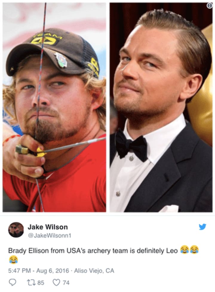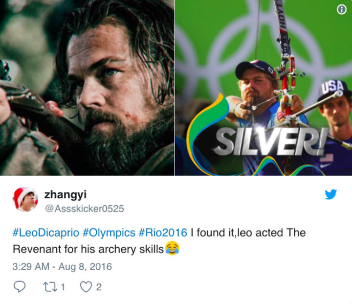 'Leonardo DiCaprio (disguised as USA Team's Brady Ellison) wins silver in men's archery!'Follow us: @MailOnline pic.twitter.com/amjlnAp82I— LeodiCaprioofRN (@LeoDiOfRN) August 8, 2016