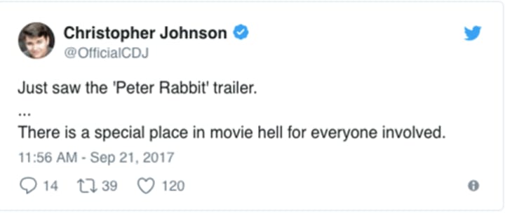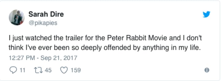 Another Twitter user showed their anger for the Peter Rabbit movie by saying they were 'deeply offended' by the first trailer.