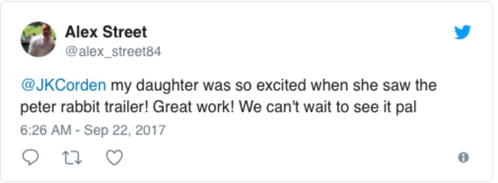Whilst a large amount of fans are raging about the upcoming movie, calling it an 'insult' to Beatrix Potter, there's also numerous fans out there who are incredibly excited to see the movie when it's released. One fan is calling the trailer 'great work' and is excited to see the movie with his daughter.
