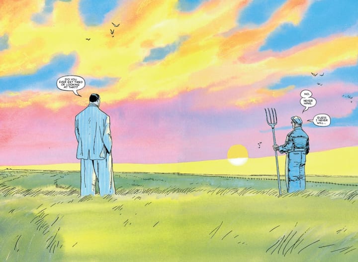 Take all the physical strength in the world, Superman’s real strength is optimism. Because he knows that bad things will happen. He knows that he’s lost so much. He knows he’s different. And, in perhaps one of his greatest stories, Grant Morrison’s “All-Star Superman” a story that sees him face death, he still chooses kindness.