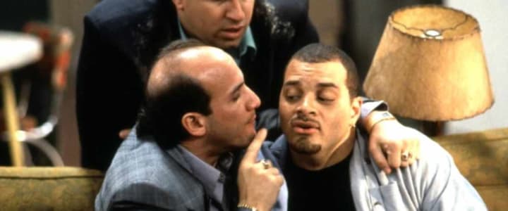 Gary and his kids are at the airport to meet Gary’s oldest friend, one he’s not seen in person in more than 25 years. All that Gary knows about his buddy, Derek, is that he’s black and has agreed to show off his knowledge at a presentation at Gary’s kids' school. This is all the information that Kevin needs to pretend that he’s Derek and use the Youngs as a way to escape from the mob. But first, he has to get rid of the real Derek, played by Ron Glass, by crafting an off the cuff lie so stupid that you can’t help but feel dumber listening to it while feeling a sense of sympathy for actor Ron Glass as he feigns buying into this nonsense.