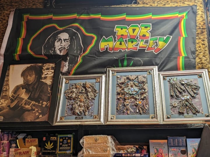 I could spend hours just looking at the things in the shop and Kaz always has good music playing. Kazbat's Den is eclectically esoteric with pictures of Bob Marley sharing space with The Nightmare Before Christmas and Ouija boards, cushions, and bags.