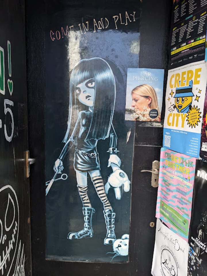 In the window is a skeleton with a Broken Doll T Shirt, The Broken Doll is gone but its spirit is maintained in Trillians and The Black Bull Gateshead.