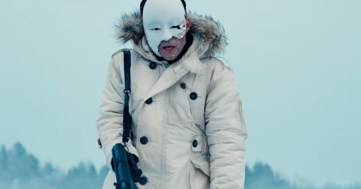 No Time to Die starts off strong, with Safin hunting down this innocent family, who live in a big secluded house in a snowy area, far away from civilization; almost like they are hiding away. This is a very different and refreshing opening to a James Bond movie, as this opening sequence feels more like a horror film, rather than a spy thriller. I actually really like this, as it makes us fear the main villain right from the start, it is also shot from the perceptive of the little girl, who witnesses her mother's brutal murder, by the hands of Safin. The girl then hides away from him, but he soon finds her, then chases her outside, shooting a machine gun at her. The cinematography shows Safin tall and intimidating, as if looking up at him from her point of view, this is very effective and makes for a very thrilling opening. Safin's creepy mask and scarred face really adds to the horror as well.