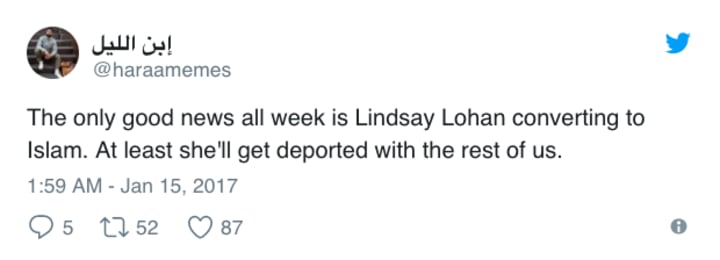 Lohan's mother Dina has played down the rumors, telling Gossip Cop that her daughter is simply taking a break from the social media platform. Lohan herself already professed to being a very spiritual woman in an interview with Oprah in 2014, and spent most of her teenage years wearing a Kabbalah red string bracelet on her wrist to ward off "the evil eye." As of yet, Lohan has been unable to comment, but in her absence, she has been embraced by the Islamic community. The majority of Twitter welcomed the actress with open arms: