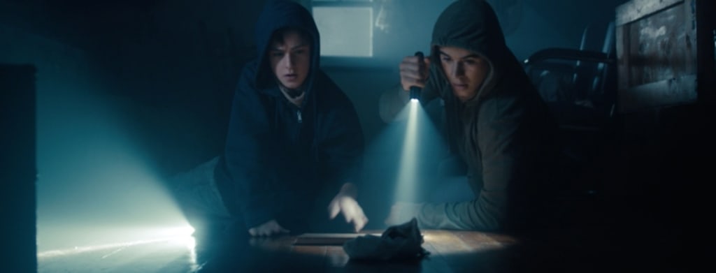 Admittedly, Low Tide is a bit reminiscent of The Goonies. Here, you have two brothers, Peter (Jaeden "The Book of Henry" Martell) and Alan (Keean “Alita: Battle Angel” Johnson), who find a bag of gold coins while plundering beach houses of tourists. Golden coins of such value could be a way out of their futureless life situation. The whole story is situated in a remote region of the Jersey Shore, a shabby neighborhood where fishery plays an important role. And tourism is also flourishing, thanks to the wealthy day-trippers from the surrounding areas. The teenagers call those day-trippers Benny’s (residents of Bayonne, Elizabeth, Newark, New York). Alan, Red (Alex “A-X-L” Neustaedter) and Smitty (Daniel Zolghadri) hate them, and therefore adhere to one rule during their raids. Homes of the local population are categorically shunned when they go looting once again.