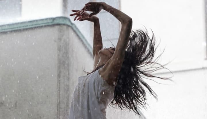 As Kotoko stands outside holding an umbrella over her head to protect herself against the downpour, she pauses for a moment, the umbrella drops and an expression of acceptance and freedom ensues. Kotoko dances in the rain, without a care and free of the stress. This bittersweet moment changes everything. One moment of pure bliss, and nothing else.